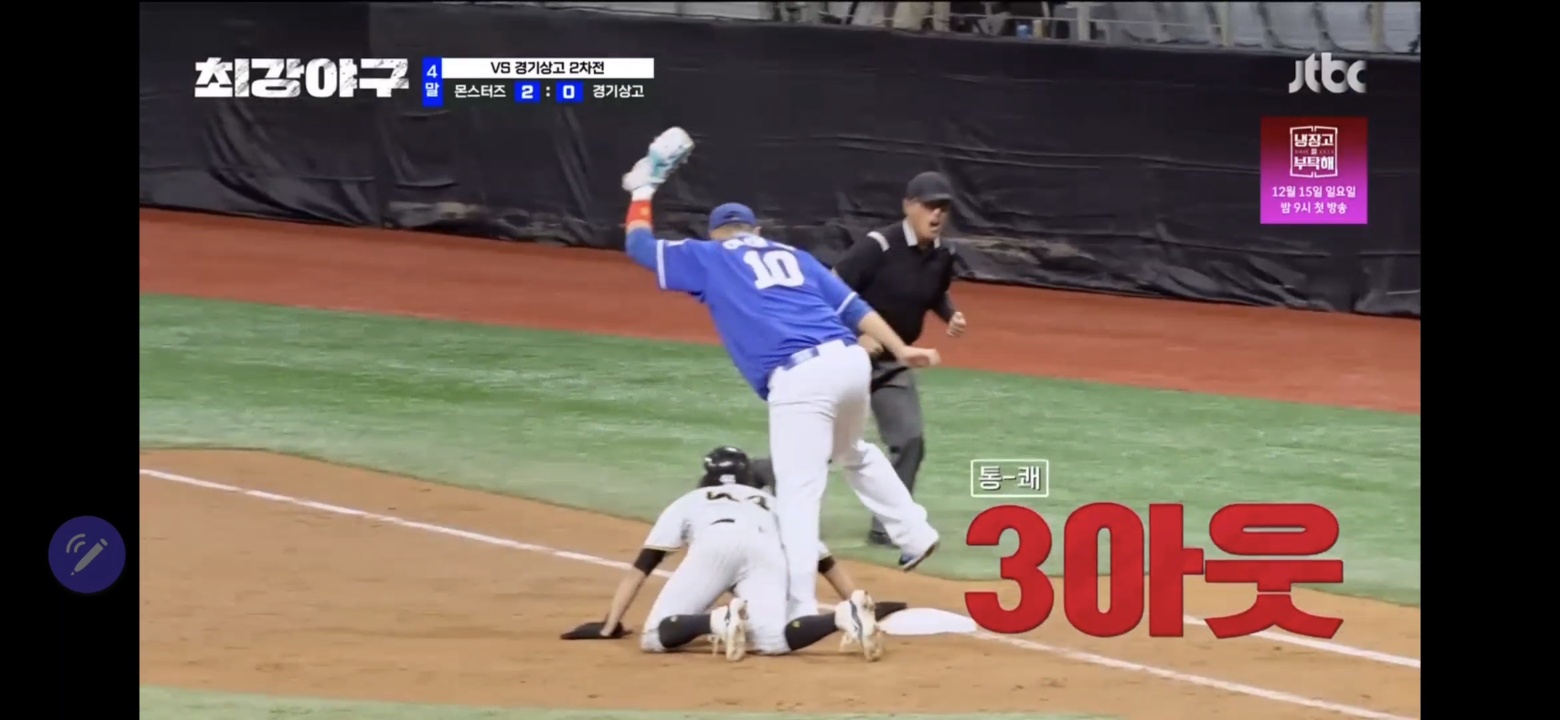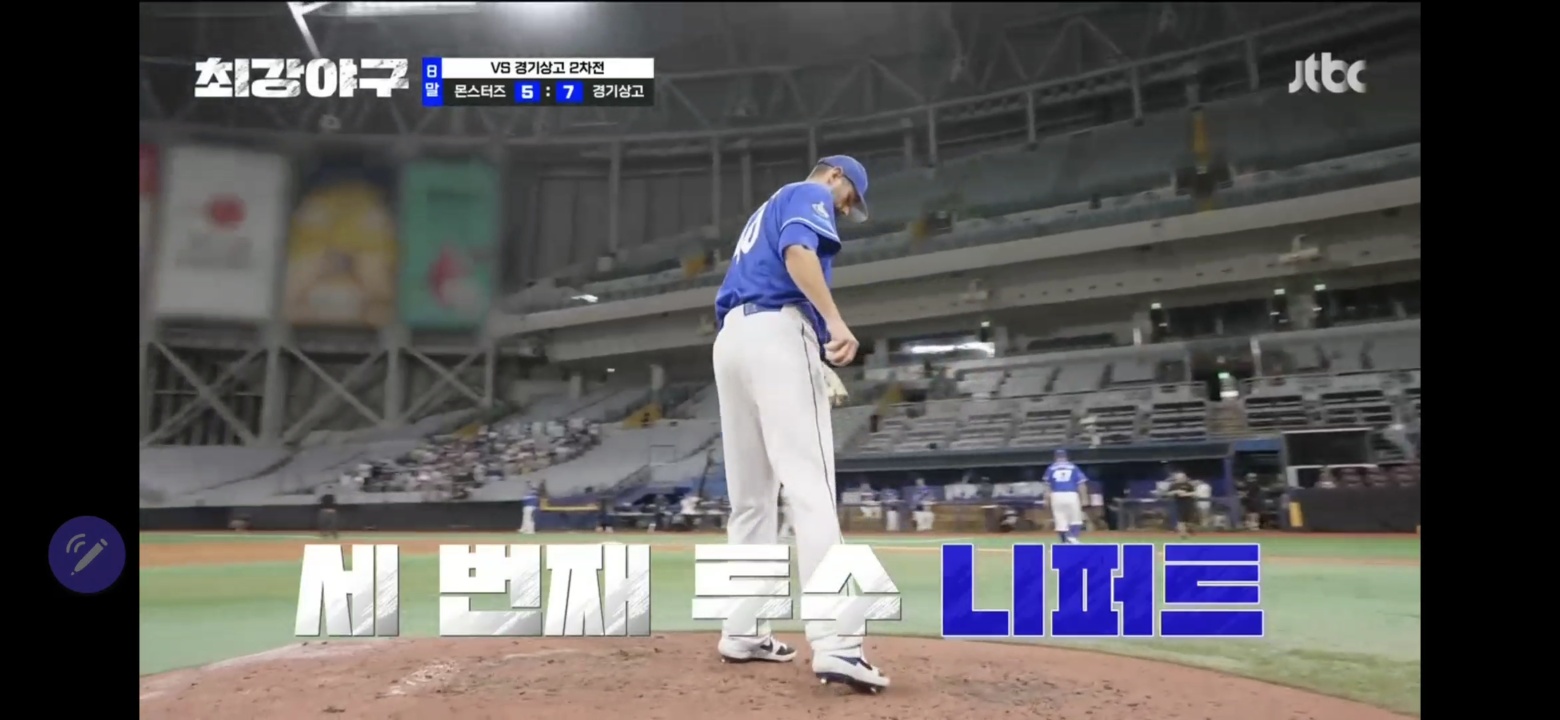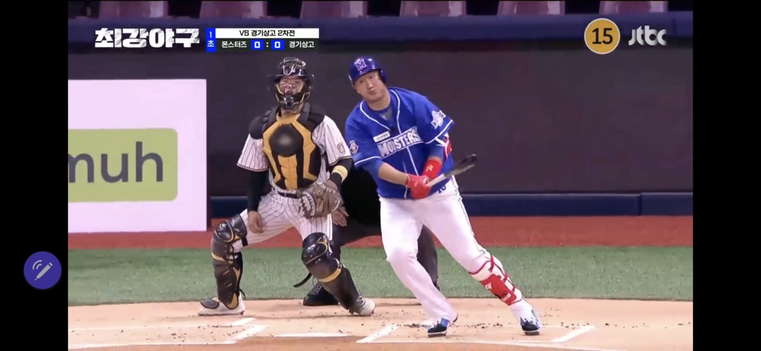 이어서 추세현이 등장해 스트라이크를 맞추며 1 아웃. 1 아웃에 주자는 2루.