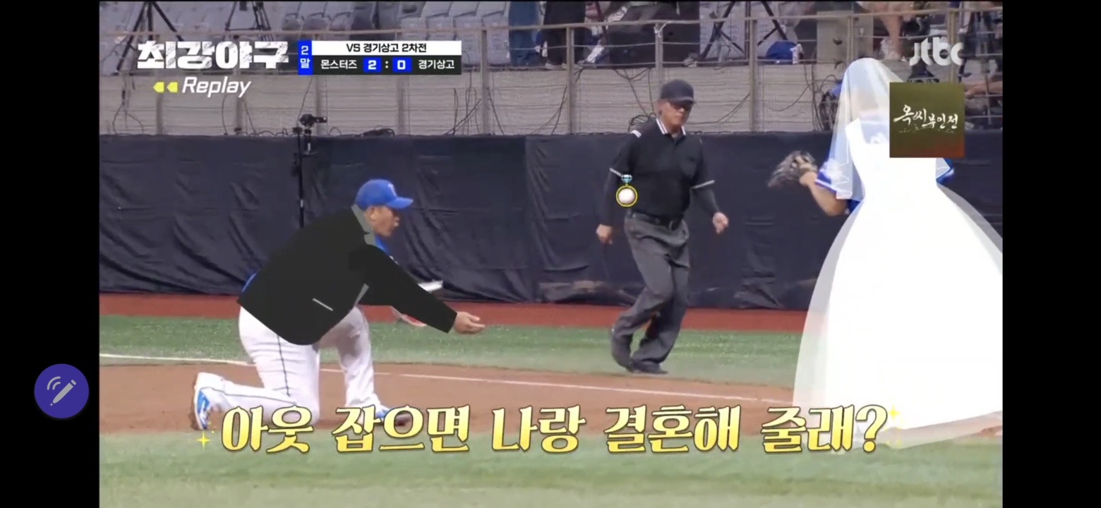 여기서 이대호가 이대은에게 프로포즈 하는 장면도 볼 수 있습니다. 베이스 한 발만 밟으면 되는데 굳이 그걸 또 이대은에게 토스를 하더라고요. 프러포즈가 김선우 해설위원의 올해 최고의 멘트라네요.ㅋㅋㅋ