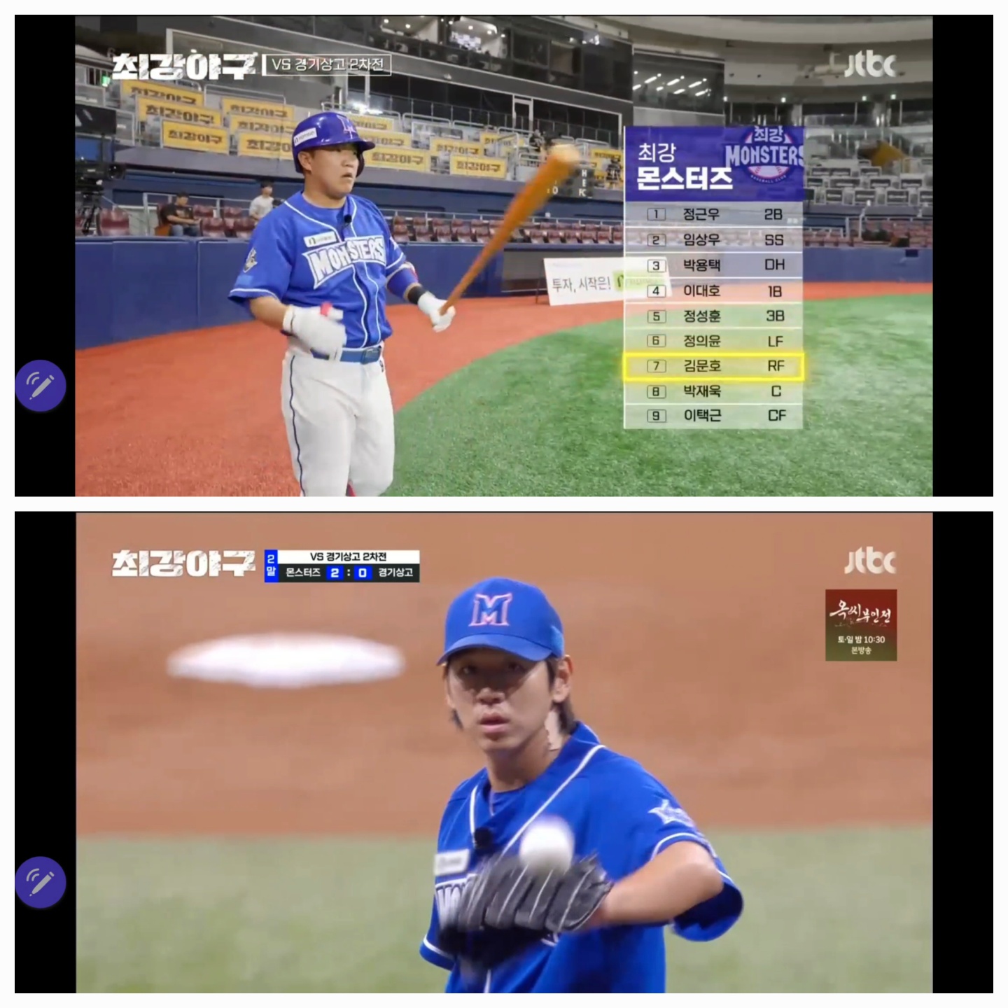 최강야구 경기상고 2차전 최강 몬스터즈 라인업